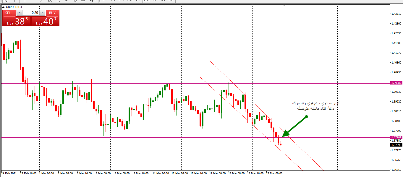 اسباب الدخول السعر اخترق دعم قوي وماشي في قناه هابطه متوسطه المدي وخرج من منطقه الشبكه والصيد بتاعتنا