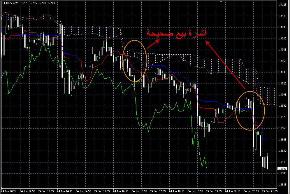 وهي تعطيك اشارة الشراء بتقاطع المتوسط الصغير للكبير صعودا كما انها تعطيك اشارة ايجابيه اذا كان السعر فوق متوسط 40 يوم مثلا