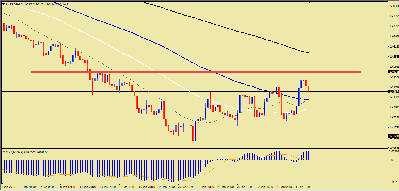 اغلق الجنيه الأسترليني مقابل نظيره الدولار الأمريكي الجلسة اليومية الثالثة للتوالي على خسائر, اذ انخفض سعر الصرف الى السعر 1.4350, ليشكل مستويات ارتداد و ضغط ايجابي للزوج. نفضل أن نترقب كسر مستويات 1.4350 بشمعة أربع ساعات لتشكيل نموذج "الرأس و الكتفين" “Head and Shoulders” على الاطار الزمني للأربع ساعات, الذي بدوره قد يضغط على الزوج لتشكيل ميل هبوطي نحو المستويات السعرية 1.4230 (دعم متحرك قوي) – 1.4150.